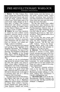 RANGE: Ye Olde Antique Boutiques, garage sales, behind the bushes beside well-marked historic trails, landmark gift shops, graduate seminars, culture loops, behind glass cases in the court house, neatly stacked on the library lawn, at Ladies’ Club Lectures (illustrated with slides)—wherever Americans dredge the shallow waters of their Nation’s History for rusty artifacts and a sense of tradition. HABITS: By most Fairy standards, or indeed by most civilized human standards, American history is not yet long or rich enough to be of more than passing interest. Yet the Pre-Revolutionary Warlock possesses many Americans with the notion that they can discover, and indeed purchase, a past for themselves. Thus, he has sponsored and fostered such groups as The Daughters of the American Revolution, The Daughters of The Confederacy, The Sons of The Pioneers, The Daughters of World War One, The Daughters of the Korean Police Action, and The Illegitimate Offspring of Veterans Against the Vietnam War. He sends us out on archeological digs around the summer house, where we learn that nearby once lived Indians, whose culture consisted of the manufacture and burial of small flints, which may or may not be arrowheads. He leads us on grade school field trips, where the sniff of a powder horn, the heft of a Bowie knife, or the sight of a surviving bison sets off a lifelong obsession with Americana. The spell cast by the Pre-Revolution-ary Warlock often lasts into our adult lives. We long to live in dilapidated eighteenth-century shacks. surrounded by Ethan Allen cobbler’s benches, pewter chamber pots, quaint quilts by crazy Quakers, warped and wormy butter churns, coon skin fedoras, candle molds, kerosene lamps, wagon wheels, scrimshaw back scratchers, and other mementoes of simpler times, when white men were men and everybody else knew their place. The fact that almost every artifact surviving from early America is now under armed guard does not deter the Pre-Revolutionary Warlock from inspiring us to collect historically significant stuff. After all, says he, “History is happening all around us, right now!” as well as, “This could be worth a lot of money some day!” So, we buy, sell, save, revere, and treasure newspapers from the day Kennedy was shot, backstage passes to Eagles concerts, “All the way with LBJ” buttons, “Dump the Hump” bumper stickers, green Coke bottles, Billy Beer tins and other priceless reminders of “the way we were.” HISTORY: The Pre-Revolutionary Warlock is himself of lowly, albeit French, ancestry and came to the New World in hopes of bettering his condition. And he has done so: His ancestor was a little “La Fayette,” a smallish Fay who took the form of a humble French weremole. He would doubtless have rocked back on his hind quarters and flung out a paw in salute at his progeny’s achievements. The Warlock’s greatest achievement, so far, has been the oversubscription to the Franklin Mint’s Bicentennial limited offering of a lifesized, sterling silver reproduction of Lincoln’s distinguishing wart. SPOTTER’S TIPS: Look for the Pre-Revolutionary Warlock wherever the humorous sign “We Buy Junk/We Sell Antiques” is displayed. *The Pre-Revolutionary Warlock cherishes tradition. Polishes it. Auctions it off.